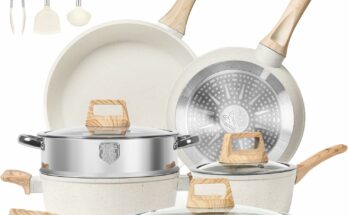 View on Amazon The SODAY 12pc Nonstick Cookware Set aims to be a helpful addition to any kitchen. This set includes twelve pieces, and that is a good number for …