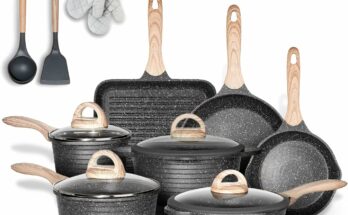 View on Amazon Looking for new frying pans? The MICHELANGELO Granite Fry Pan Set might be a top choice. This set includes 10″ and 12″ frying pans. Each pan comes …
