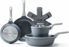 VREMI 15 pcs Non Stick Color Pop Cookware set is a complete cooking kit that includes six important pots and pans and a 5-piece utensil set. The cooking set has gotten high quality design, pots and pans have cool-touch ergonomic handles and these utensils are made with FDA grade nylon. These utensils are very easy to clean as these are made from non-stick materials so they can easily be cleaned with the help of a washing soap or cloth. The cookware set includes 3 saucepans, 1 stockpot, 2 frying pans and one slotted spoon, slotted spatula pasta server, ladle and potato masher. These utensils are durable and can last for years if you care them, you are advised to use only hand-wash with soapy water and please don’t use abrasive cleaners. Read more…