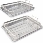 • ✅ 【2 Set for Faster Cooking】2 different size of air fryer tray for oven measuring means you can cook more food at once, saving you time and energy. Whether you're feeding a family or entertaining guests,this crisper tray and basket set can handle it all.