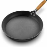 This Aufranc frying pan set includes three non-stick skillets in 8, 9.5, and 11-inch sizes, making them useful for different cooking tasks. They can be used on all kinds of stovetops, including induction, and have handles that stay cool to the touch. These pans are made without PFOA and PFAS. However, the non-stick surface might scratch easily, and they may not work well with very high heat, possibly leading to uneven heating or warping. The brand is not very well-known, and there are some worries about the quality of the materials. Some people have reported that food sticks to the pans, and they need to be cleaned gently. Also, these pans might not be completely stick-proof, and the sides could heat up faster than the bottom. Read more…
