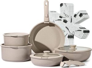 - ✅ Ceramic nonstick coating with durability of perfection is free of PFOA, PFOS, and the other harmful chemicals. You can enjoy your cooking on carote cookware safely & easily.