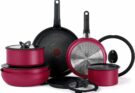 Many users said that the COOKSMARK pans set is gorgeous. A user said that it has all the utensils that he needed. They are in good sizes. They said that they were beautiful and worked great! For the even cooking requirement, the COOKSMARK pans are very good. They are also very easy to clean. As per most users, the price is very good! They are lightweight too! They are very easy to use too. A user mentioned in his review that the non-stick surfaces are very good but they didn’t put in a dishwasher because they were very easy to clean. Though they are great induction compatible pans but some users said that they were smaller than expected. The largest pan in the set holds two cups of liquid, so he expected other pans to be a bit larger than what they are now.