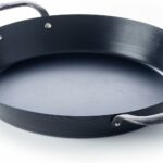 This De Buyer Blue Carbon Steel fry pan, made in France, is an 8-inch pan with a 5.5-inch cooking surface and a 2mm thickness. It’s oven-safe and free of PFAS, PFOA, and PFOS. Carbon steel heats well and is durable, making the pan versatile, though the handle can get hot. It’s not non-stick when new and might have a slight iron smell initially. There could be some confusion about a coating, but it requires hand washing and the blue color may fade over time. Uneven heating is possible, and it needs careful maintenance to prevent rust and build its natural non-stick properties through seasoning. Read more…