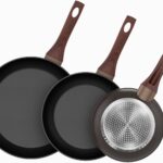 The 10-inch Emura non-stick frying pan is a professional-grade aluminum skillet designed for easy cooking on all stovetops, including induction. It boasts a PFOA and PTFE-free nonstick coating that is scratch-resistant, oven-safe, and has a heavy feel. While it generally offers easy cooking with slight sticking reported by some users, the handle design is not fully clear, and it can get hot with long-term use. Although advertised as scratch-resistant, it requires care, and dishwasher safety is uncertain, making it important to use with caution, especially at high heat. Read more…