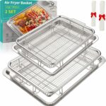 This Fridamilie set has two metal baskets for your air fryer that can be washed easily. It also comes with magnetic sheets that stick to your fridge. These sheets have cooking times for over 90 common foods, so you can quickly find out how long to cook things. This can save you time when you are cooking. However, the magnetic sheet might get lost and might not have all the foods you want to cook. Remember that the times are just a guide, the metal baskets can get hot, and how you put the food in the basket can change how evenly it cooks. Also, the size of the baskets might limit how much food you can cook at once. Read more…