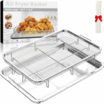 Air Fryer Basket for Oven with 50 Recipes, Extra Large 2 Piece Nonstick Crisper Tray & Basket, Stainless Steel Air Fryer Accessories for Crispy Foods Healthy Cooking, Dishwasher Safe, 16.5” x 12.5”