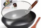 This 7-inch GreenPan Rio frying pan is black and made with a ceramic nonstick coating that is free of harmful PFAS chemicals, making it a healthier choice for cooking. It’s designed to be easy to clean and is even safe to put in the dishwasher. The pan heats food evenly and has a handle that stays cool to the touch. While it’s good for many cooking tasks, the nonstick might not last forever, and food could stick over time. Also, the handle can sometimes get hot, it’s not the best for very high heat, and the coating might scratch without care. The outside can be tricky to clean, and some people have had issues with the handle melting or the pan not being truly nonstick, with a few reporting general quality problems. It’s also a smaller pan, which might not be ideal for cooking large amounts of food. Read more…