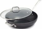 The GreenPan Swift 8″ frying pan is a nonstick skillet made without harmful PFAS chemicals, making it a healthy choice for cooking. It heats up quickly and evenly, has a handle that stays cool and is easy to grip, and can go in the dishwasher and oven. Its sloped sides and good heat transfer make it versatile for different cooking tasks. However, food might slide off too easily due to the low sides, the nonstick coating may not last very long, and some users have reported that food like pancakes can stick and that a chemical smell can occur. Read more…