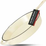This Hamilton Beach 11-inch saute pan has a nonstick marble coating, a soft, wood-like handle, and comes with a glass lid. It’s designed as a multipurpose chef-style pan made of stone-like material with an induction bottom and is PFOA-free for safe cooking. It’s easy to clean and heats evenly, though the handle might get hot and uneven heating is possible. The glass lid can break, and the pan is not meant for very high heat and might not be super strong. The handle is not real wood, and it’s an 11-inch pan, so it’s a limited size, and you only get one pan. Read more…