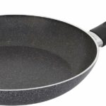 This HLAFRG 10-inch frying pan has a nonstick surface with a granite look and comes with a lid. It’s good for cooking eggs and omelets and has a handle that stays cool. This pan is made for healthy cooking because food won’t stick, and it can be used on induction stoves. It’s also made without toxic materials.