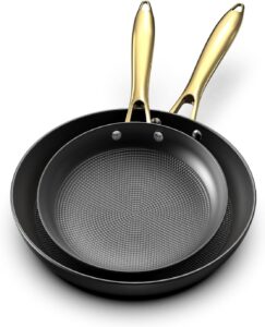 - ✅ Honeycomb Non-Stick Coating: Our non-stick coating features a unique honeycomb design, which ensures excellent non-stick performance during cooking. Meanwhile, the honeycomb dots guarantee the even distribution of oil, allowing you to use less oil for cooking and achieve a healthy cooking method with less oil