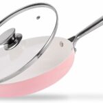 This JEETEE 12.5-inch frying pan is good for cooking eggs and omelettes because it has a nonstick stone coating, so food should slide off easily and it’s simple to clean by hand. The handle stays cool while you cook. It can be used on all kinds of stoves, including induction ones. It’s made of aluminum, which helps it heat up evenly. However, it might get scratched without careful use, and it doesn’t come with a lid or can’t be washed in a dishwasher. The handle is made of Bakelite, and there’s a chance it could develop hot spots or the nonstick coating might wear out over time. It’s made in China and doesn’t have any harmful chemicals like PFOA, which makes it a safer choice. Read more…