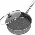 This 9.5-inch MICHELANGELO deep frying pan has a non-stick surface with a grey granite look, making it easy to clean and good for cooking without food sticking. It works on induction cooktops, has a stainless steel handle, and comes with a lid. The pan heats up quickly and evenly, and can also go in the oven. However, the non-stick coating might not last a very long time, the handle could be attached better, and the lid knob could be improved. Some people have reported the pan bending or the coating peeling, and not all sets from this brand work on induction stoves. There are also a few reports of shipping damage and general issues from some users. Read more…