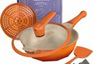 This MICHELANGELO frying pan set comes with three different sizes: 8, 9.5, and 11 inches. They say these pans have a non-stick coating made from stone and are non-toxic. The handles are made to stay cool, and you can use them on induction stoves. You should need less oil when cooking, and they can be used for different kinds of food. However, some people have said that food can sometimes stick, the pans might not be super strong, the coating could chip off, and they might not be truly non-stick. Overall, some buyers felt the quality was not great, the handle might feel loose, and there’s a chance you could get a fake product. Also, these pans are not made in Germany. Read more…