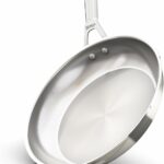 This Ninja EverClad fry pan is made with tough, commercial-grade stainless steel and has a tri-ply build for even heating. It can handle high oven temperatures up to 600°F and works on all types of stoves, including induction. The 10.25″ size is good for many cooking tasks. However, it needs more oil to prevent sticking, can feel heavy, and might change color over time. It’s not non-stick, takes some effort to wash by hand, and some people think it costs a lot. You also need to heat it carefully. Read more…