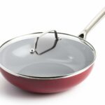 This Red Volcano 11″ flat bottom wok with a lid is designed for high-heat cooking and has a red, textured ceramic nonstick surface that is free of PFAS, PFOA, and PTFE. It’s oven and broiler safe up to 600°F and dishwasher safe, plus it heats quickly and evenly and is metal utensil safe. However, some customers reported receiving damaged pans, noted a cheaply made construction, experienced sticking and loss of non-stick quality, and found it scratched with metal utensils. Additionally, the color in the picture may not be accurate, it’s not suitable for induction cooktops, might not be ideal for heavy-duty use, and could be considered pricey by some, with a few reports of chipping or peeling. Read more…