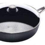 This Swiss Diamond frying pan is made with strong aluminum that helps heat spread evenly. It has a nonstick coating made with diamonds, so food doesn’t stick, and you can use less oil for healthier cooking. It’s safe to put in the dishwasher and oven (up to 500°F). The handle is made of stainless steel and is easy to hold. The inside of the pan is smooth because there are no rivets. However, this pan can cost more money, and the nonstick might wear off over time. It’s best to use low or medium heat, as high heat is not recommended and can make the lip of the pan very hot. It can also get scratches, so washing it by hand is a good idea, and some people find it heavy. There have been some reports of problems with the warranty and the pan wearing out unevenly. Read more…