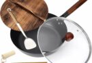 • โœ… UNIVERSAL: Our stainless steel pans and woks work safe on all types of stovetops, including gas, electric, glass, halogen, comes with small and large size making it a versatile addition to your handy cookware collection.