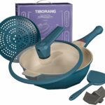 This tangerine-colored TIBORANG 8 in 1 pan is a non-stick, 11-inch skillet that comes with a lid and a steamer. It can be used on all kinds of stoves and works as a wok, stir-fry pan, and saute pan. The pan is made without harmful chemicals called PFAS and PFOA, and it’s supposed to be easy to wash and long-lasting. However, the non-stick coating might wear out over time. Also, it could be big, the color might not be for everyone, and how long it lasts is not known. The steamer might not be useful for everything, the lid might not fit perfectly, the handle could get hot, and it might be hard to clean sometimes. It might also cost more money, and it might not really do eight different things as advertised. Read more…
